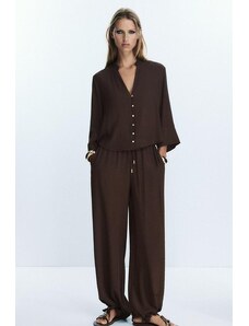 ZARA COTTON GAUZE BLOUSE Brown XS