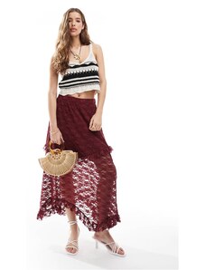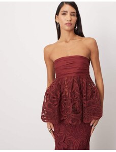 Six Stories velvet lace corset bandeau maxi dress with neck scarf in burgundy-Red