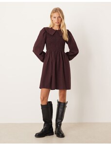 Wanderdoll Sabrina tailored square neck structured side pleat mini dress in plum