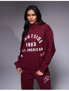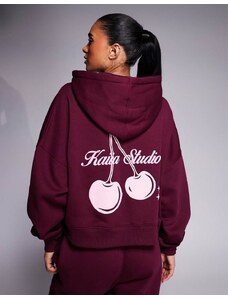 Kaiia cotton rich Studio cherry back graphic oversized zip up hoodie co-ord in burgundy and pink-Red