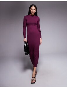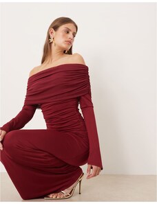 Oh Polly slinky boat neck long sleeve ruched skirt mini dress in wine-Red