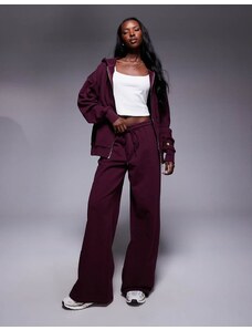 Princess Polly All Day cotton drawstring waist wide leg sweatpants co-ord in burgundy-Red
