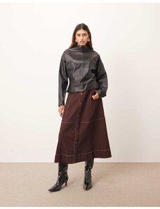ARRANGE heavy twill full midi skirt with contrast stitch in burgundy-Red