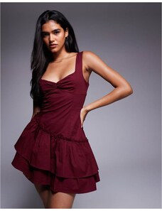 Princess Polly Shantelle asymmetric ruffle hem playsuit in burgundy-Red