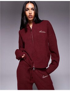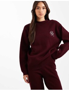 4th & Reckless knitted embroidered logo detail jumper co-ord in burgundy