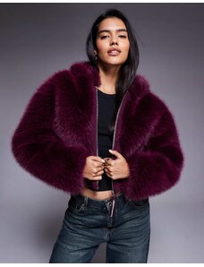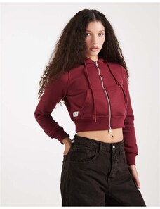 Cotton On cropped zip through hoodie in cherry wood-Red