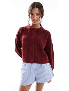Gina Tricot long sleeve knitted button down mini dress in burgundy-Red