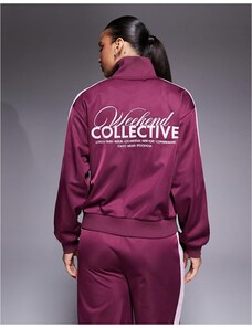 ASOS Weekend Collective Weekend Collective co-ord zip through poly-tricot tracksuit top in burgundy-Red