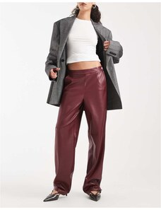 ONLY high waist faux leather straight trousers in burgundy-Red