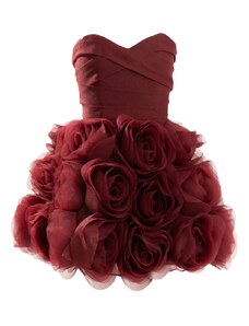 ASOS LUXE lace bandeau mini dress with velvet bow detail in dark cherry-Red