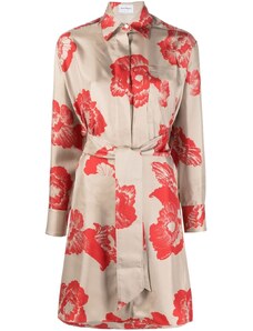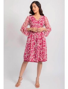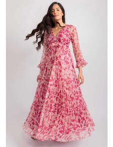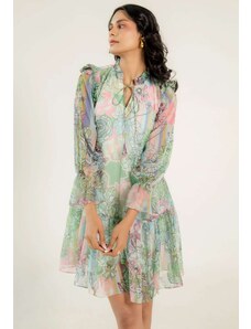 Lace & Beads Petite tulle scarf neck plunge neck tiered mini dress in rose floral