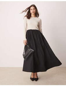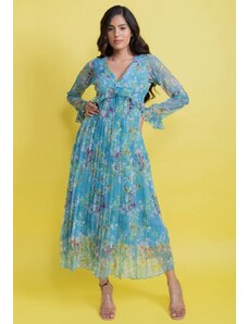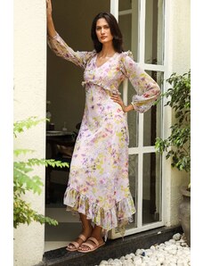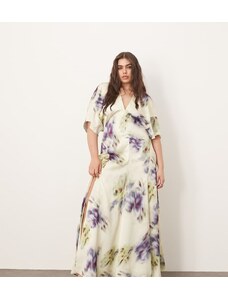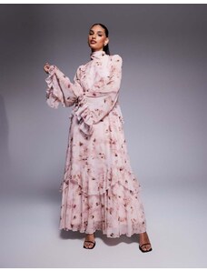 ASOS LUXE pearl embellished chiffon exaggerated maxi dress in Buttermilk floral print-Multi