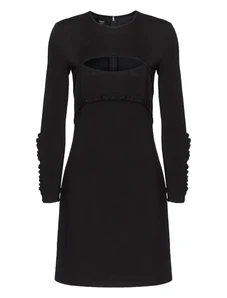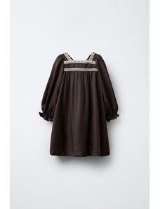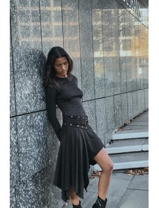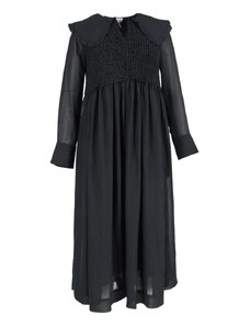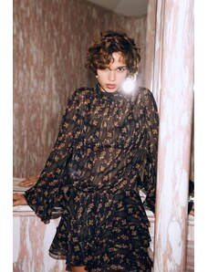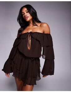 Murci square neck long sleeve gathered ruffle hem lace mini dress in black