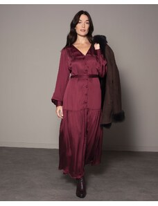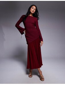 Wanderdoll Lucky velvet square neck side pleat mini dress with gloves in burgundy-Red