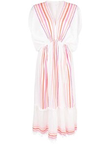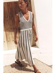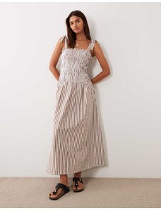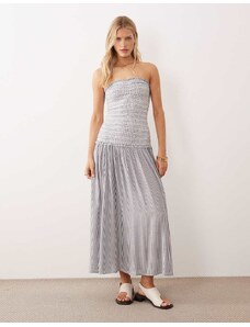 Iisla & Bird bandeau shirred drop waist beach dress in black and white stripe