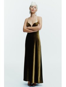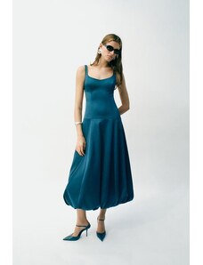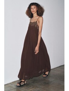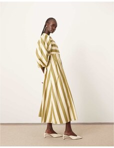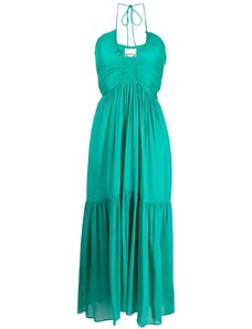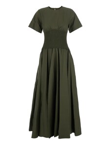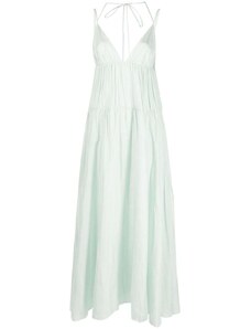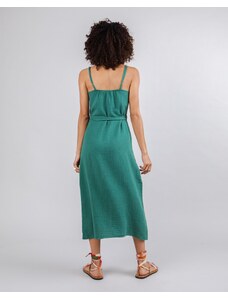 Brava Fabrics Bubble Strap Long Cotton Dress Green – Sustainable V-neck Dress for Beach Days & Festivals