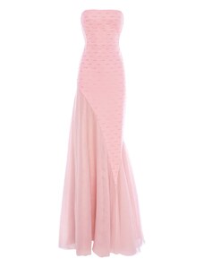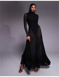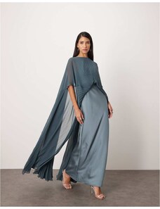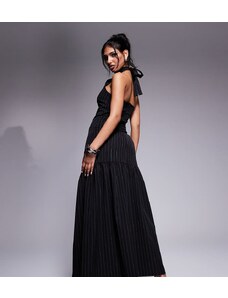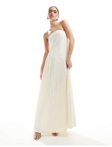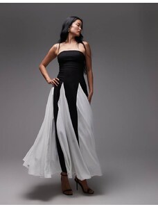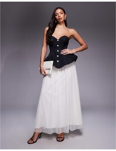 ASOS LUXE sculpted bandeau maxi dress with pleated dobby mesh skirt in mono-Multi