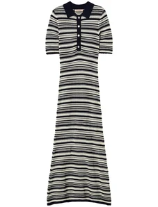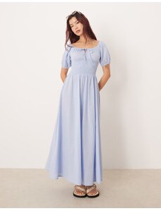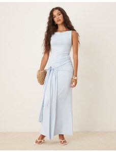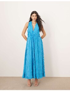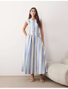 Esmee Exclusive shirring halter maxi beach dress in blue and white stripe-Multi