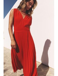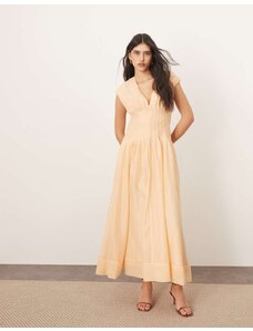 ARRANGE organza pleat waist maxi dress with tie back detail in peach-Orange