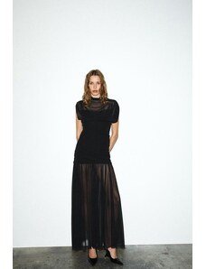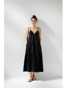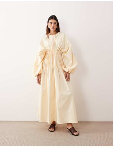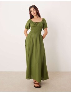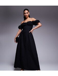 Kaiia exclusive cotton milkmaid puff sleeve hip pleat detail maxi dress in black