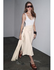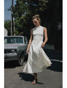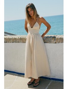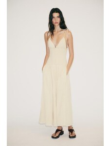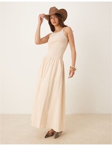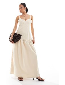 4th & Reckless linen blend dropped waist cami maxi dress in buttercream-White