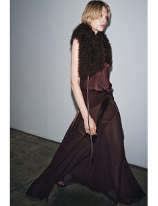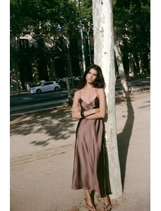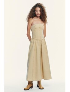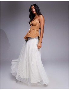ASOS LUXE sculpted bandeau maxi dress with pleated dobby mesh skirt in camel-Brown