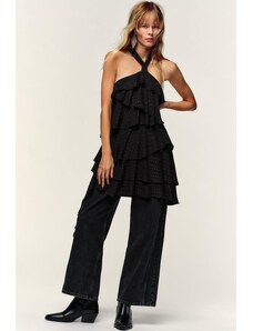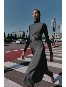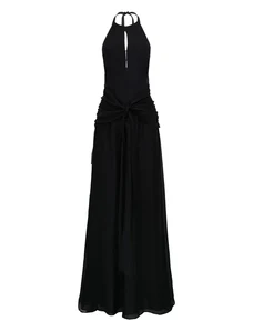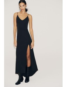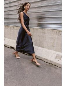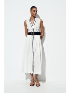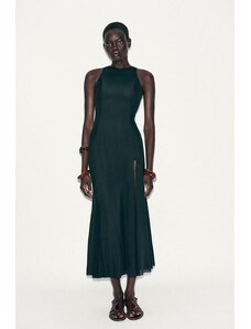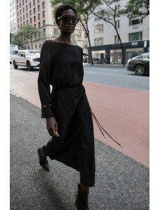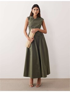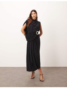ARRANGE sleeveless draped hem midi dress with buckle trim detail in black