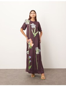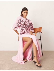 ARRANGE linear floral embroidered low back modern maxi tea dress in pink and red