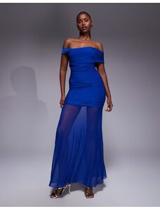 Kaiia exclusive double layered slinky asymmetric one shoulder sheer hem maxi dress in cobalt-Blue