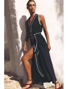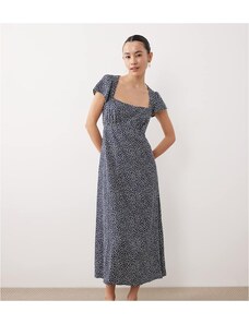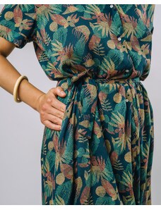 Brava Fabrics Flower Vichy Long Dress Navy – Sustainable Floral Print Dress for Beach Days & Vacations