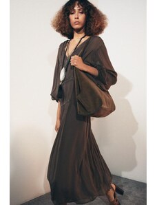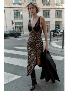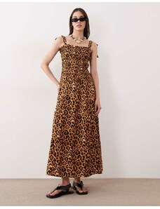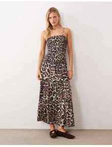 Iisla & Bird maxi shirred detail beach dress in leopard print-Brown