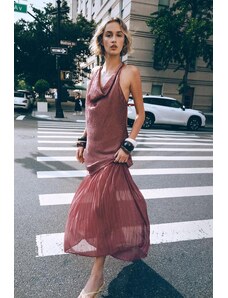 Six Stories Bridesmaids satin sleeveless cowl back maxi dress in rose pink