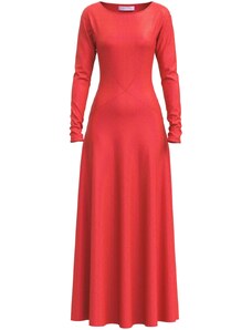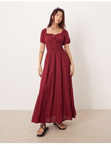 Kaiia exclusive knitted slash neck long sleeve maxi dress in burgundy-Red