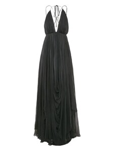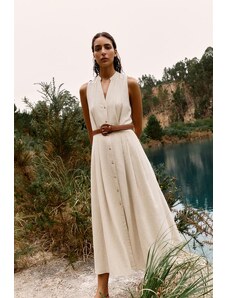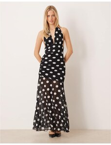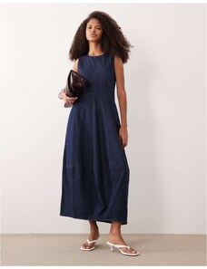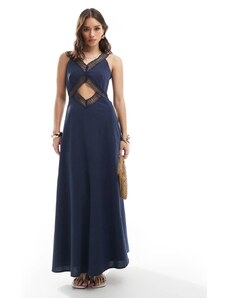 Esmee Exclusive shirring halter maxi beach dress in blue and white stripe-Multi