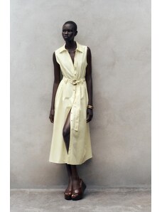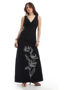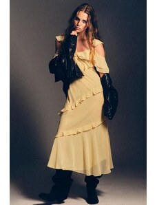 Lace & Beads Petite tulle v neck sheer sleeve maxi dress in lemon-Yellow