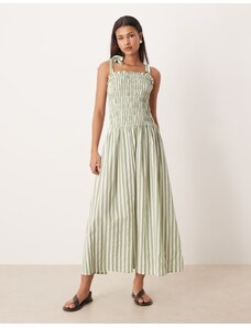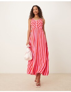 YAS Festival boho style puff sleeve maxi dress with button front detail in coral floral stripe-Multi