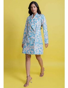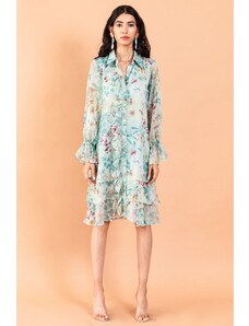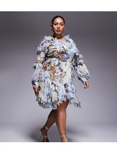 ASOS LUXE Curve organza and chiffon printed asymmetrical mini dress with embellishment in blue western floral