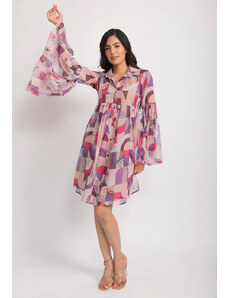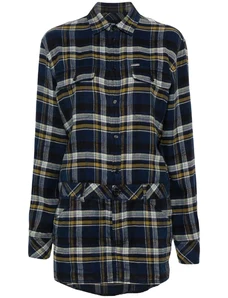 Noughts & Kisses button up shirt asymmetric hem mini dress in pink check