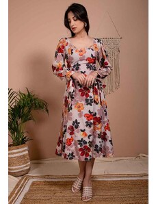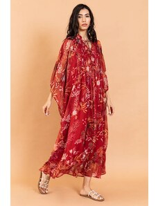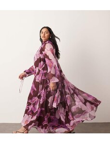ARRANGE Curve chiffon trapeze maxi dress with balloon sleeves in large burgundy floral-Multi