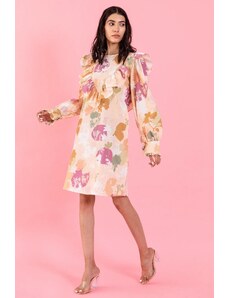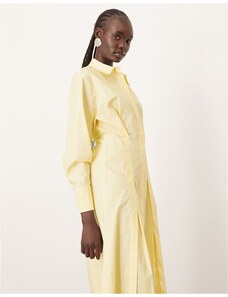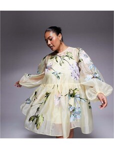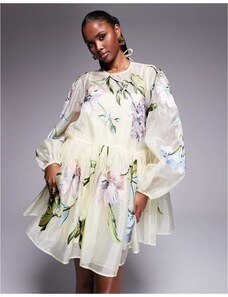 ASOS LUXE oversized organza mini smock dress with floral embroidery in buttermilk - YELLOW