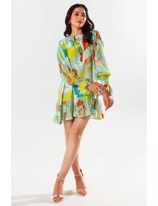 AFRM Darcie mock neck mesh mini dress in animal and floral print-Multi