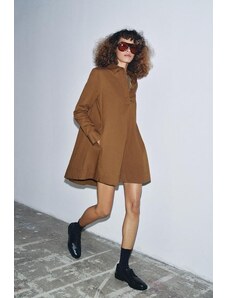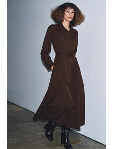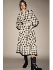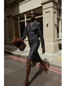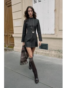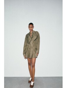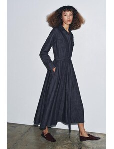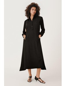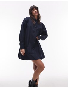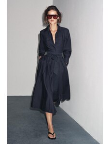 ARKET cotton rich long sleeve mini shirt dress with cinch waist detail in black
