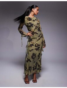ASOS LUXE pearl embellished chiffon exaggerated maxi dress in Buttermilk floral print-Multi