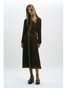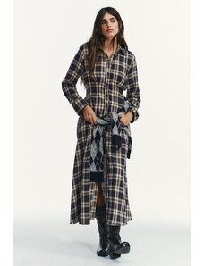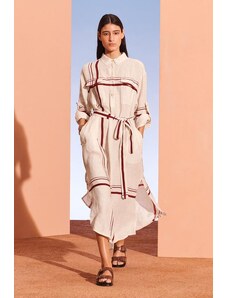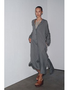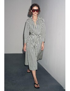 YAS tie waist maxi shirt dress in black and cream stripe-Multi