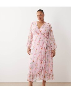 Vila Curve dobby wrap maxi dress with frill detail in cherry blossom floral print-Pink