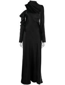 4th & Reckless double layered slinky drape off shoulder gold hardware detail mini dress in black