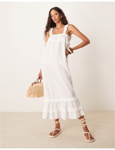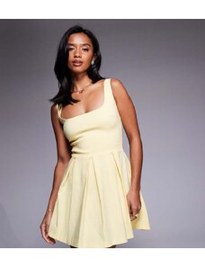The Frolic exclusive ruffle drape detail square neck thigh split maxi dress in buttermilk yellow
