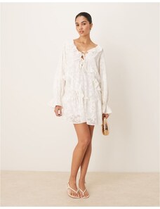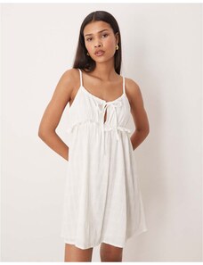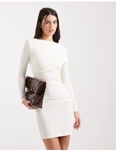 4th & Reckless double layered slinky drape shoulder detail mini dress in cream-White