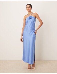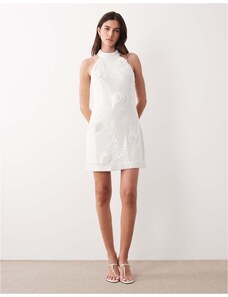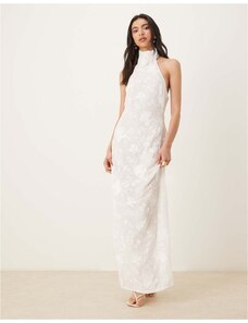 JW PEI halter neck corsage detail low back embroidered floral maxi dress in white - WHITE