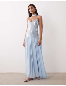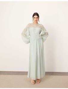 ARRANGE lace insert drop waist blouson sleeve trapeze maxi dress in light blue